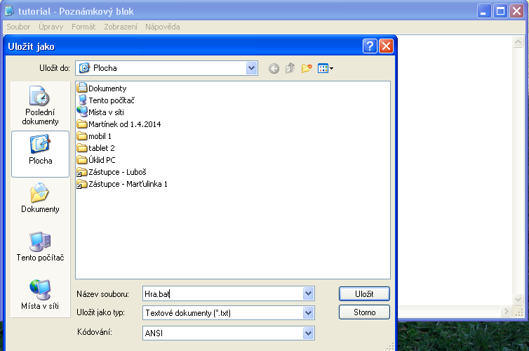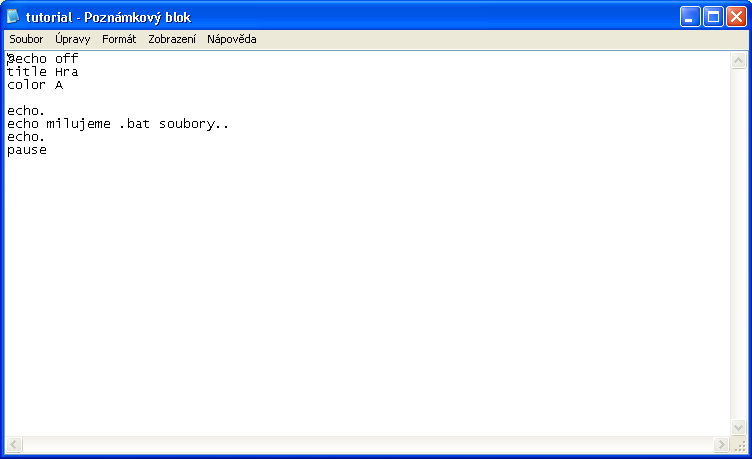 A napíšem název, ale za tim musí ! MUSÍ být napsaní .Bat