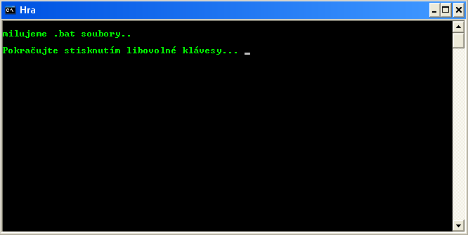 3) pause - ( Napíše všem známou větu.: "Pokračujte stisknutím libovolné klávesy..." )
